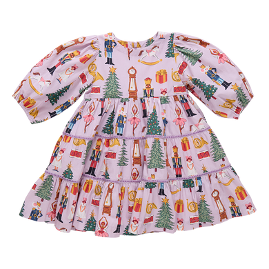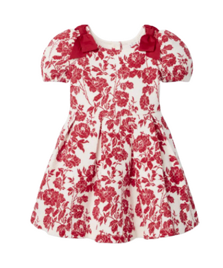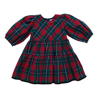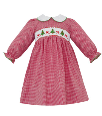 Red Gingham Long Sleeve Dress With Christmas Trees With Bows Smocking