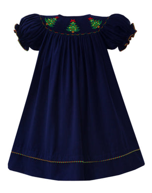 Christmas Tree Girls Navy Blue Corduroy Bishop