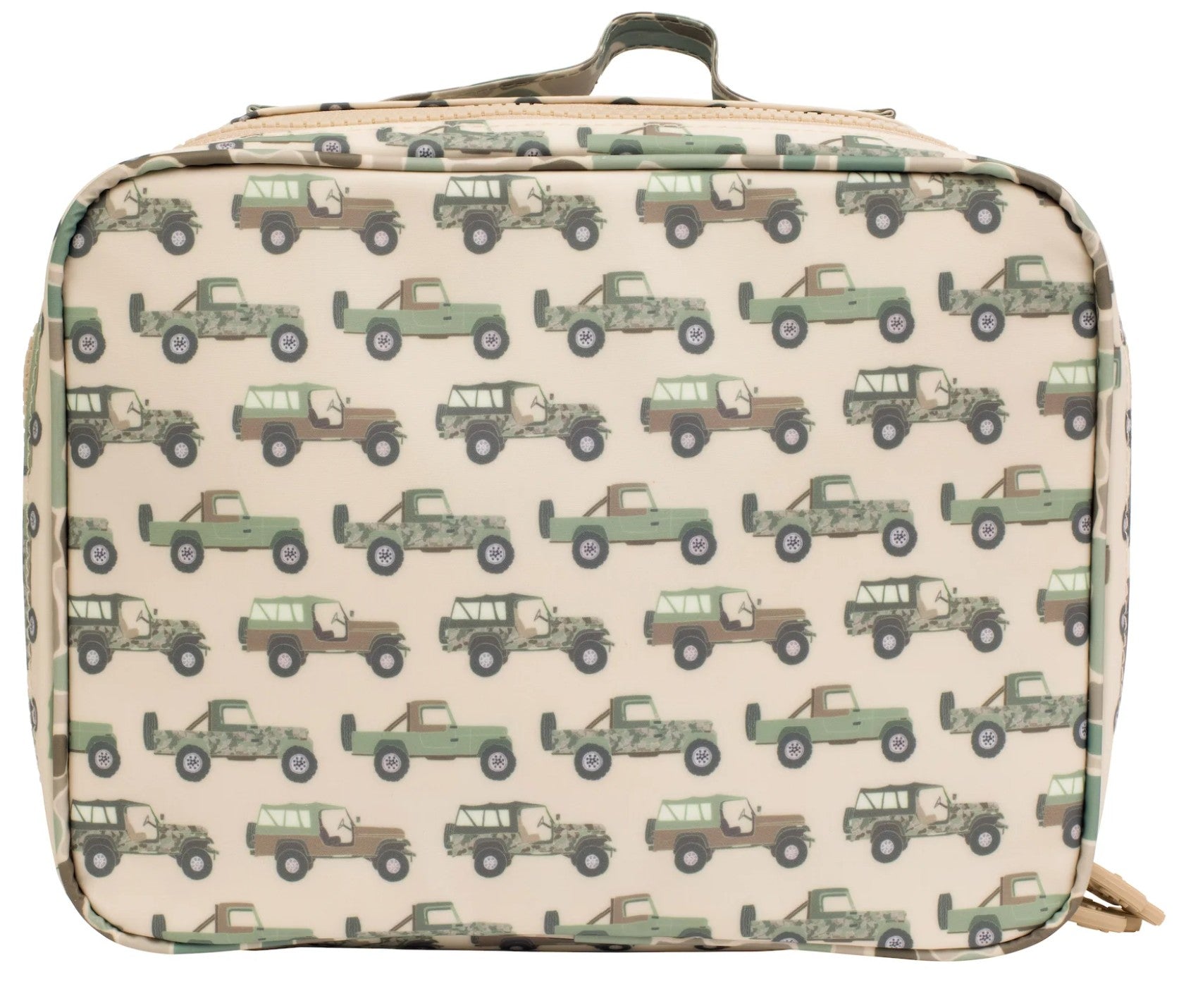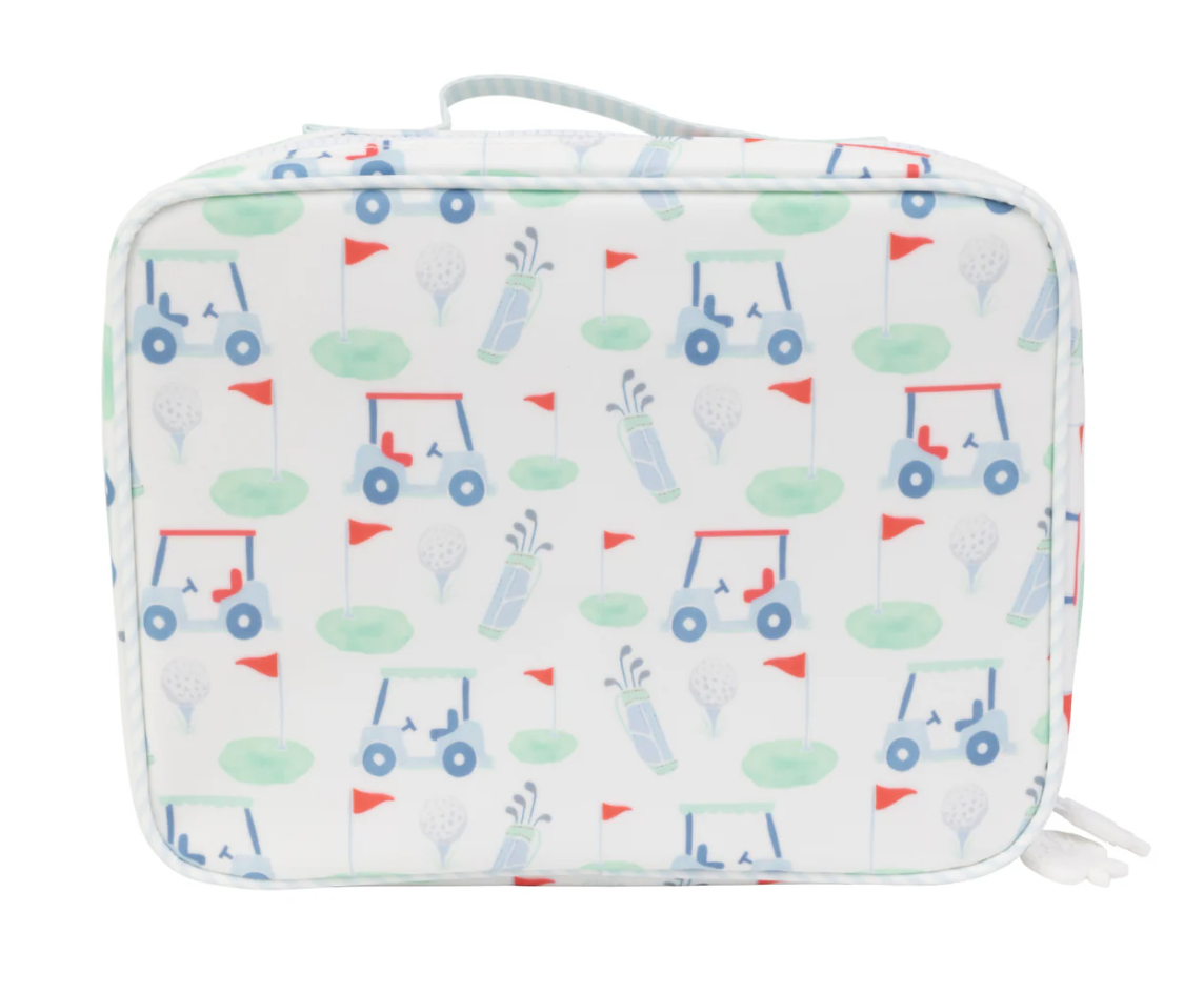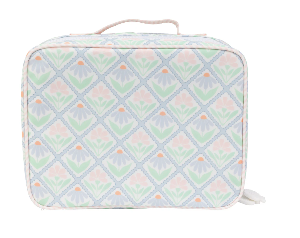 Coated, clean, and cute! The Lunchbox is available in five classic patterns, all wipeable. It is just the right size for your bento box. Equipped with a mesh inner pocket to hold your cooler packs and love notes, specifically placed on the back of the lunchbox leaving the front open for monogramming.