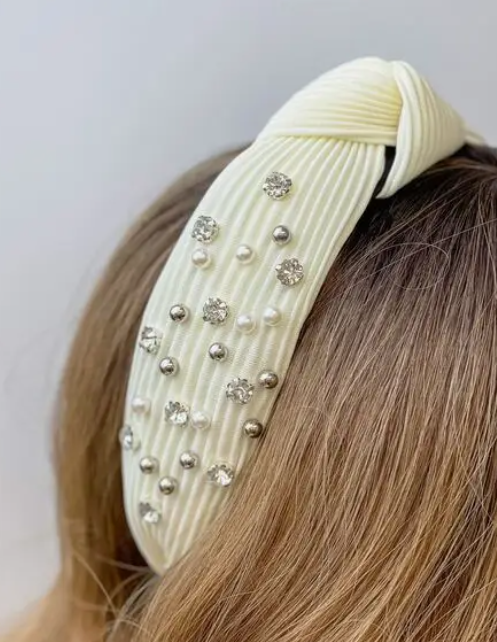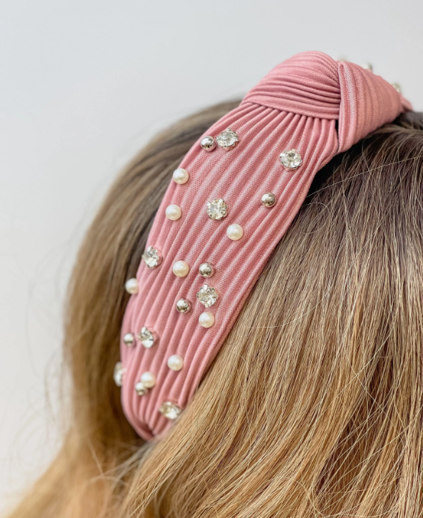 Top Knot Pearls And Rhinestones Pleated Headband - Assorted