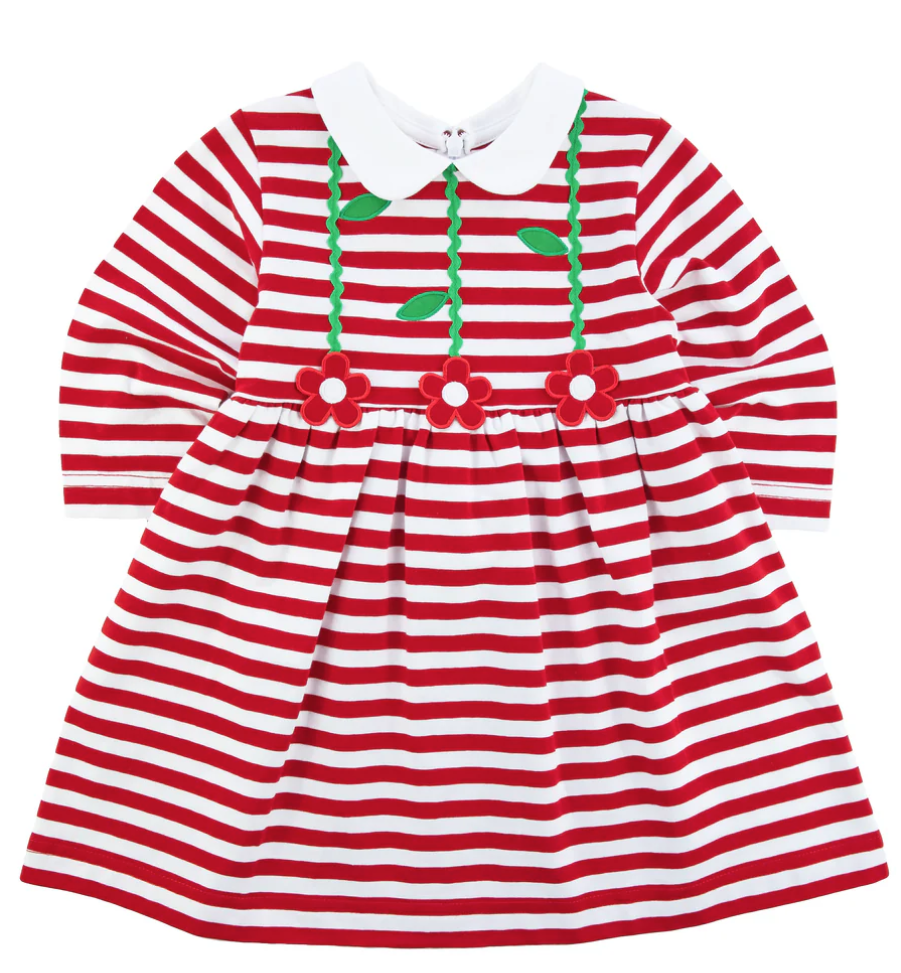 Stripe Knit Dress With Flowers
