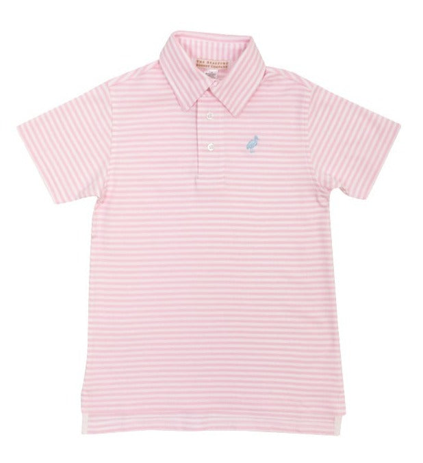 Prim & Proper Polo - Palm Beach Pink Stripe with Buckhead Blue Stork