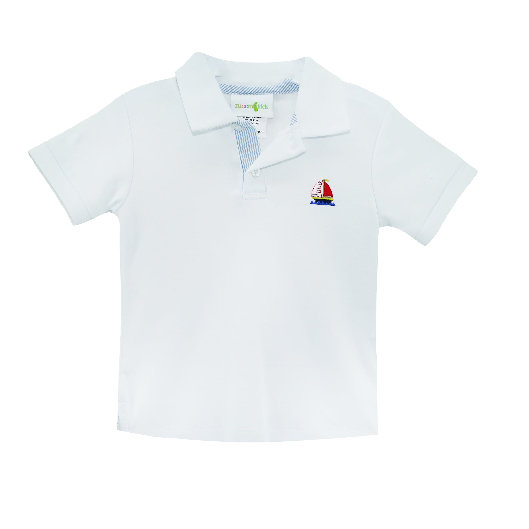 Sailboat Embroidered Polo With Blue Stripe Swimtrunk