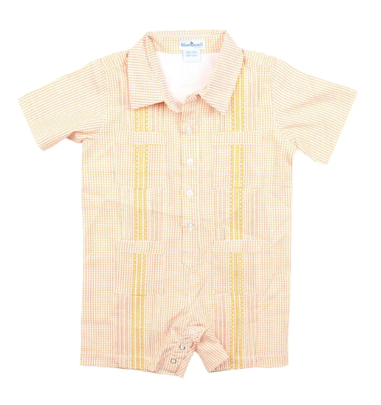 Pink And Citrus Check Short Sleeve Guayabera Romper