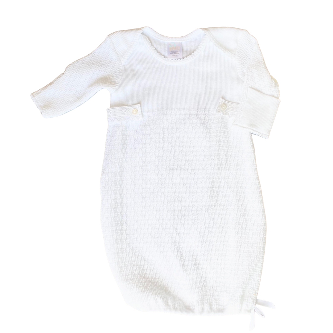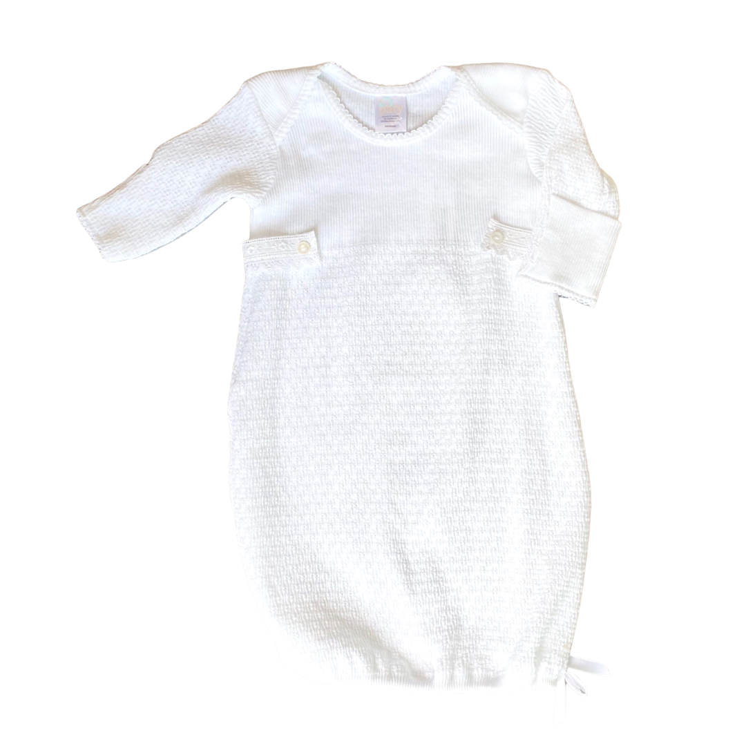 Long Sleeve Shoulder Gown With French Eyelet Tab