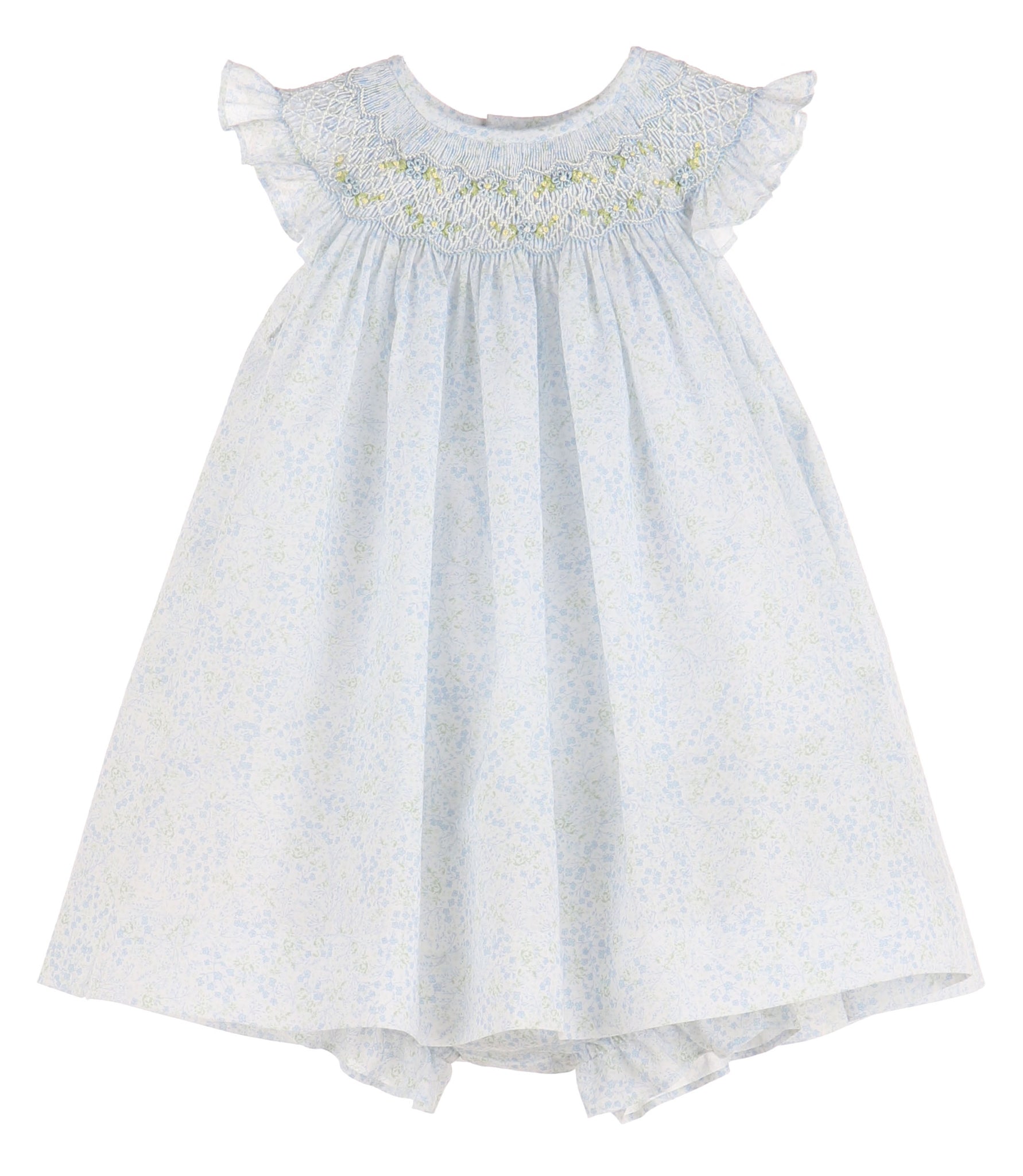 Blue Tiny Floral Smocked Bishop
