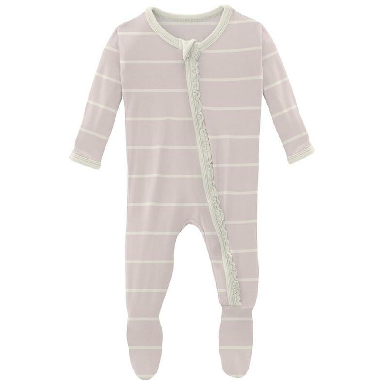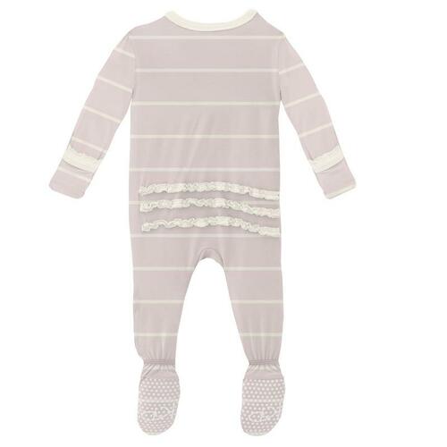 Macaroon Road Trip Stripe Muffin Ruffle Footie With Snaps - Preemie