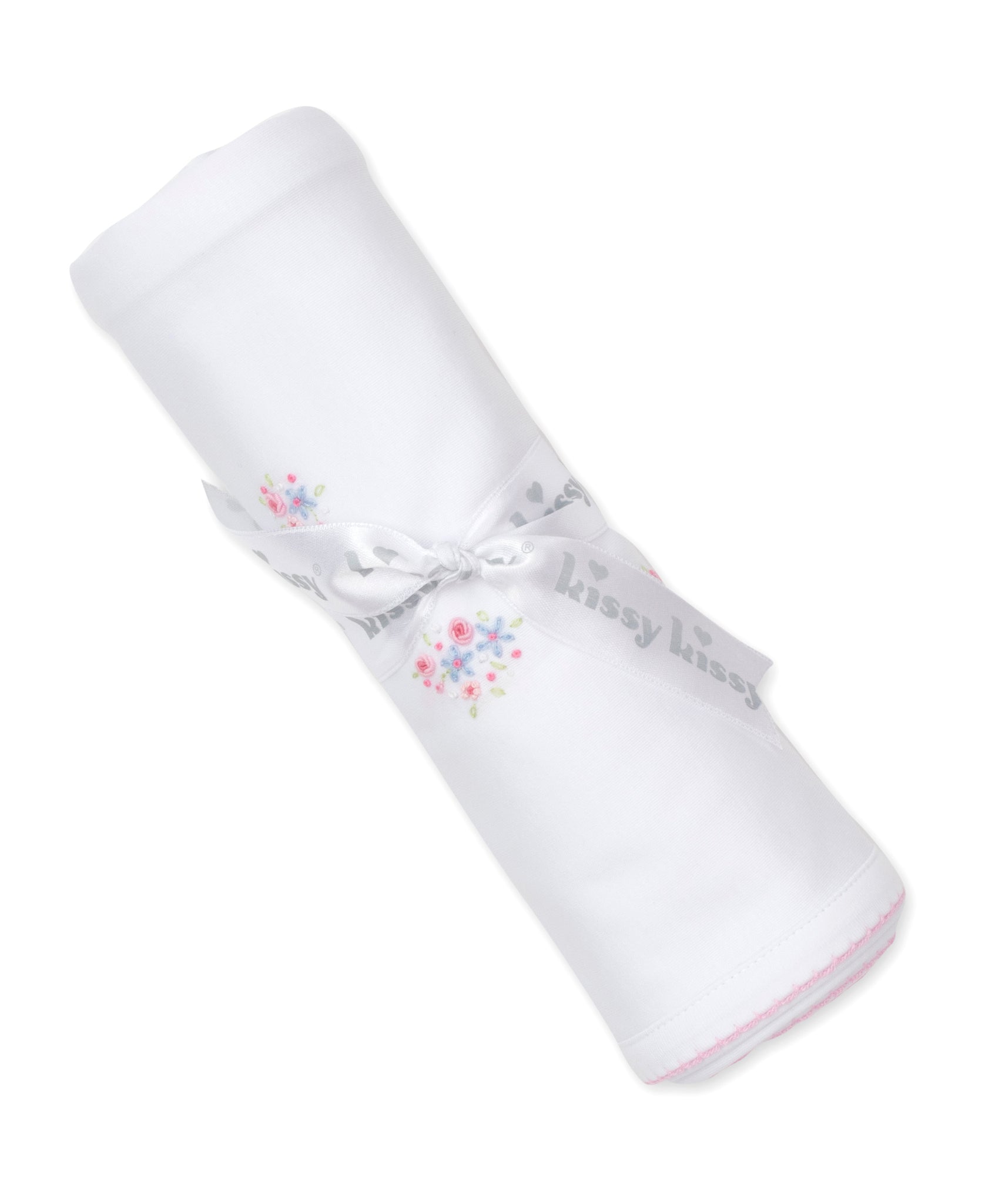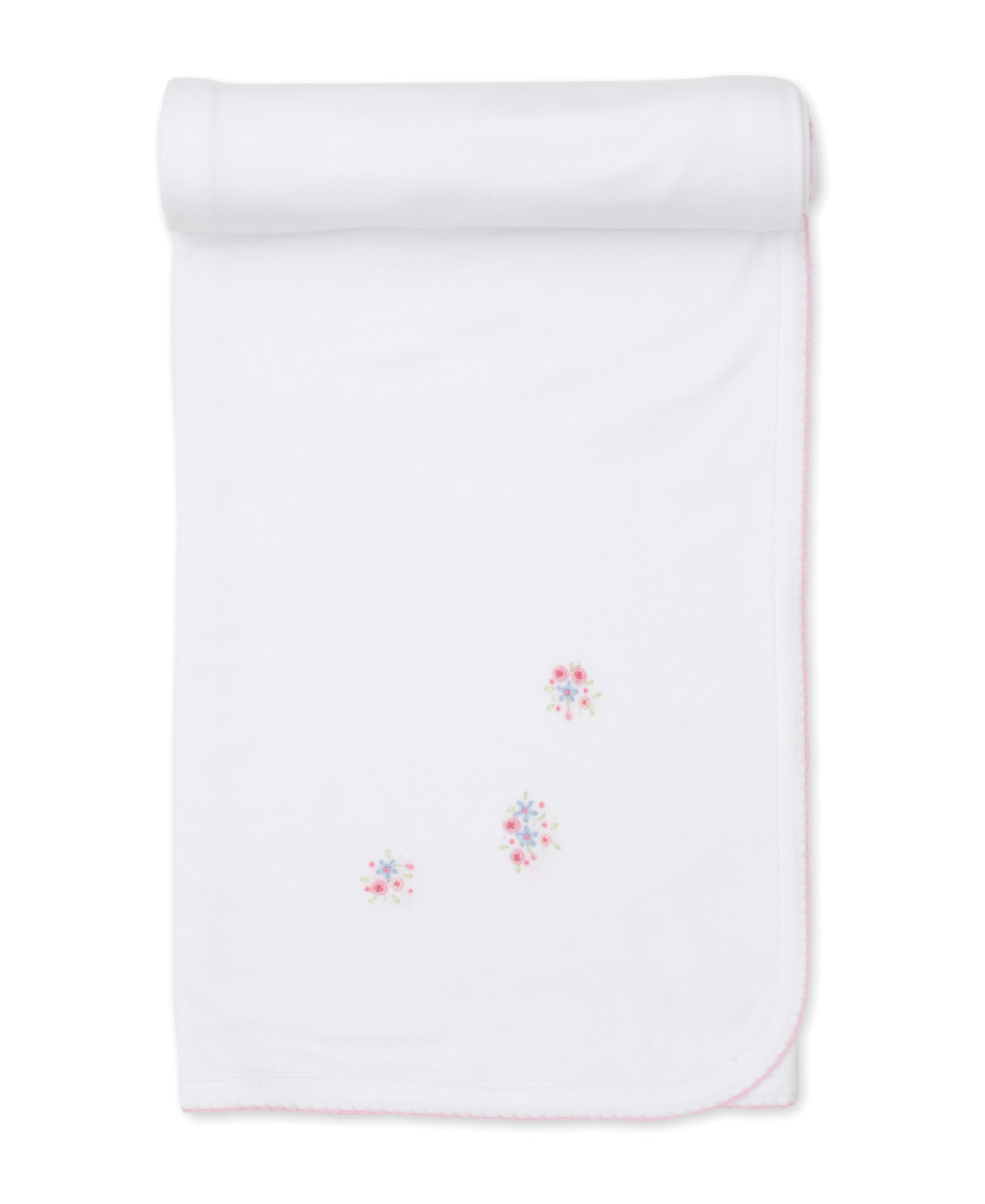 SCE Floral Fantasy Blanket with Hand Embroidery - White with Pink