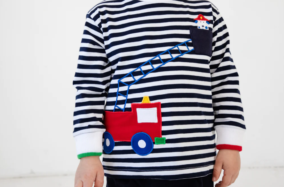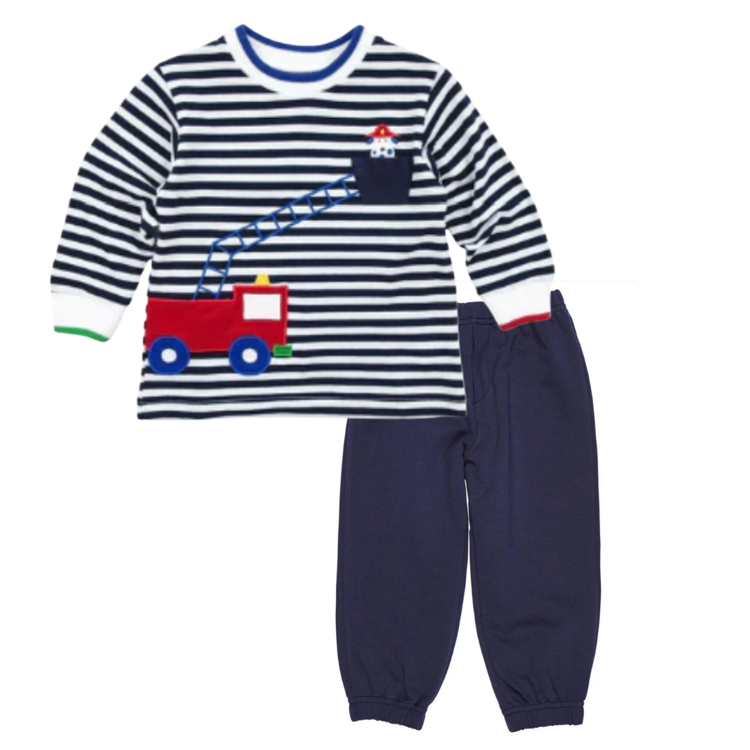 Navy Stripe Shirt With Firetruck And Dalmation With Navy Jogger
