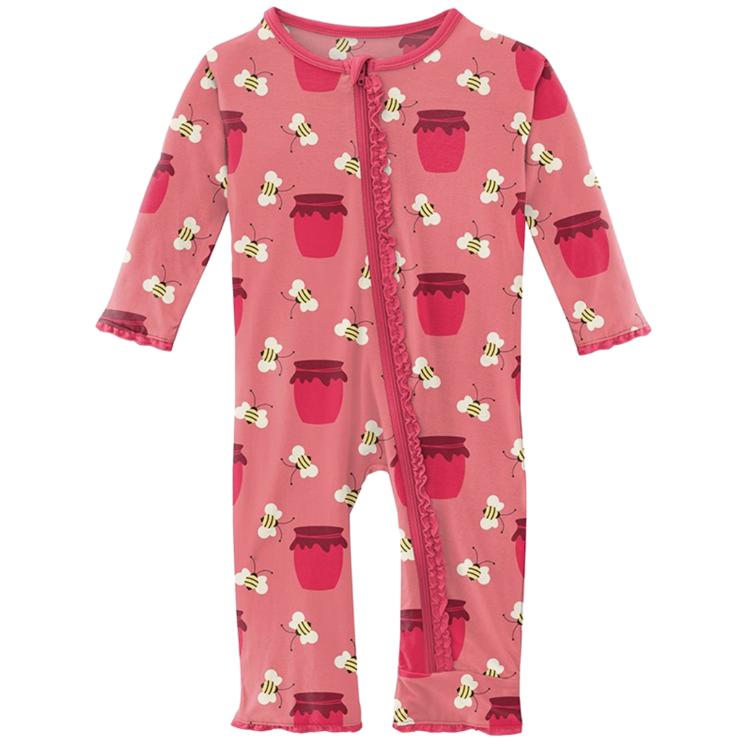 Strawberry Bees And Jam Muffin Ruffle Coverall With Zipper
