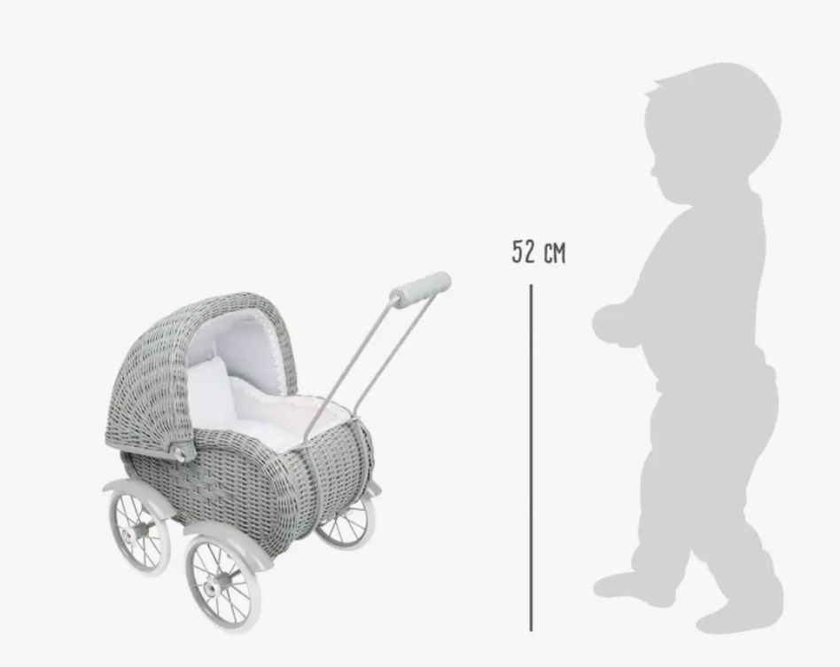 This wonderful vintage style pram in steel-grey can be used as a toy or as a beautiful decoration item! With a stable metal frame and rubber-covered wheels for quiet rolling.