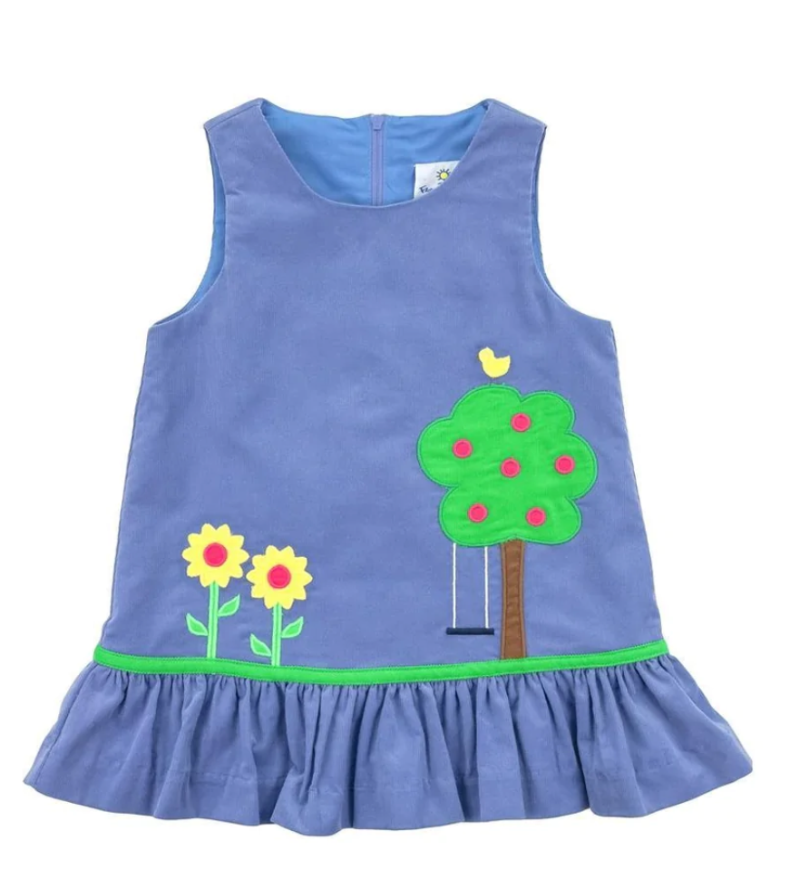 Medium Blue Jumper With Apple Tree And Sunflowers