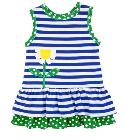 Royal Stripe Knit Dress With Flower