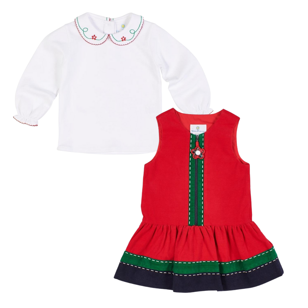 Corduroy Jumper with Flower Pull & Embroidered Top