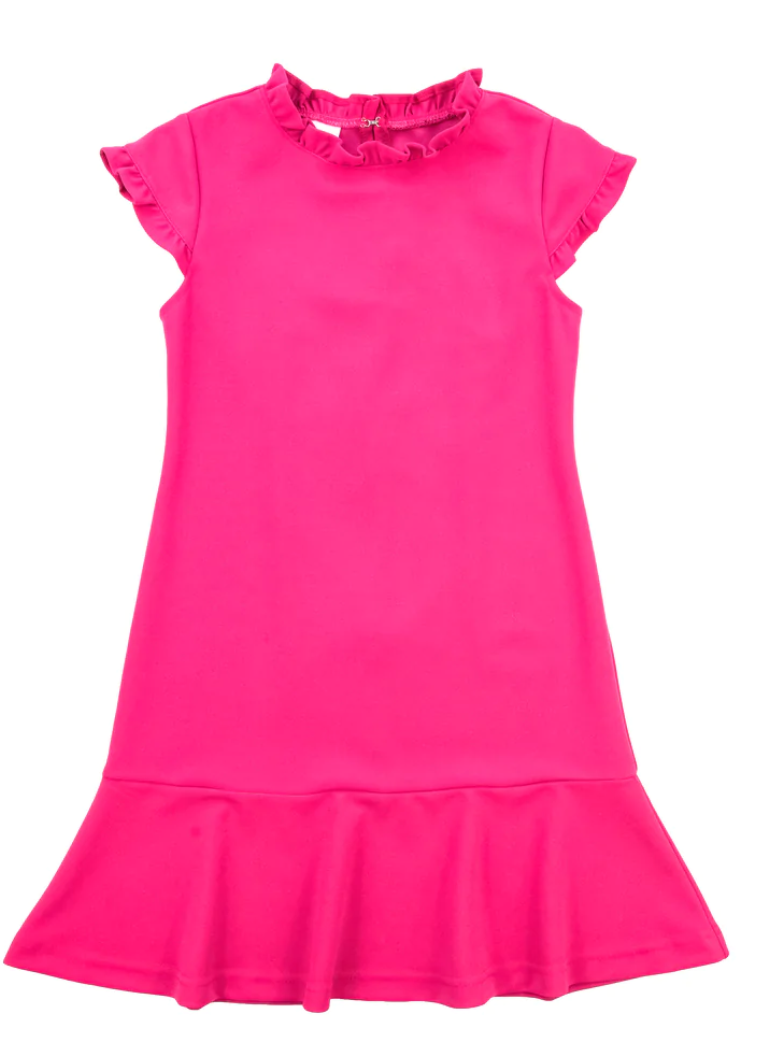 Magenta Techno Knit Dress With Ruffles