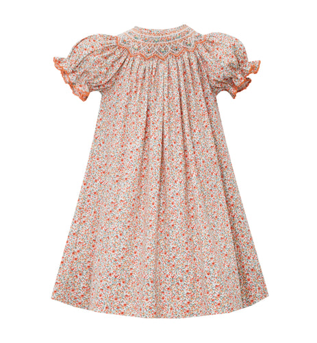 Red Gingham Long Sleeve Dress With Christmas Trees With Bows Smocking