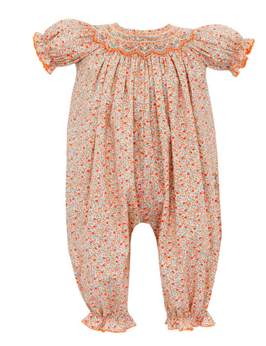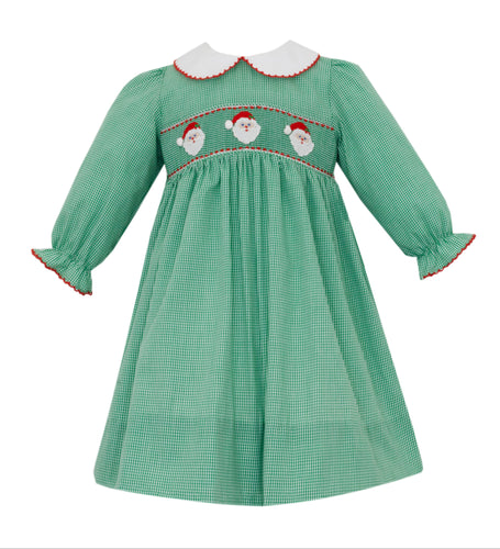 Green Gingham Long Sleeve Dress With Santa Face Smocking