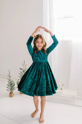 Gwendolyn Dress - Green Crushed Velvet