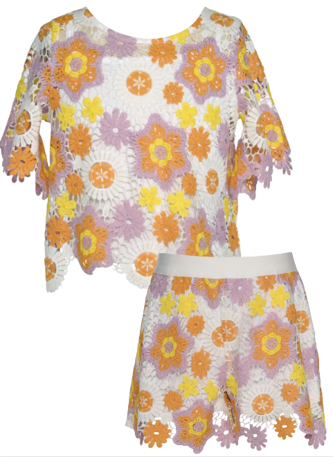 Yellow Flower Crochet Top And Shorts