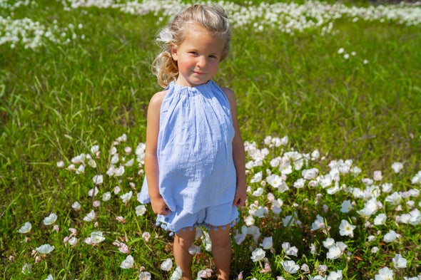 Colette Top And Short Set - Blue Stripe Swiss Dot