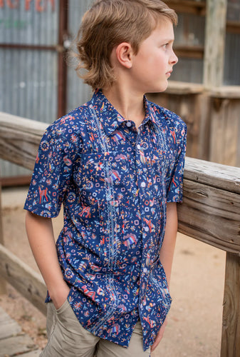 Fall Otomi Short Sleeve Guayabera Shirt