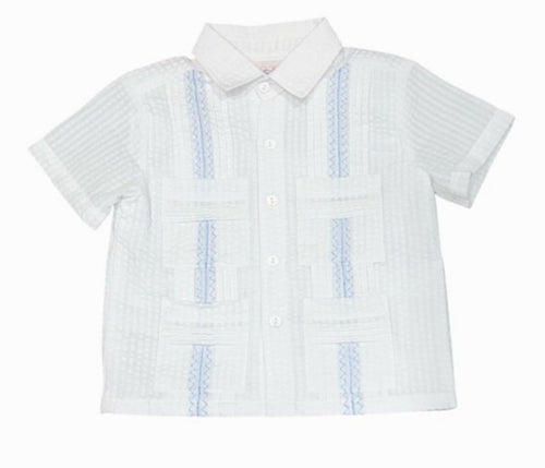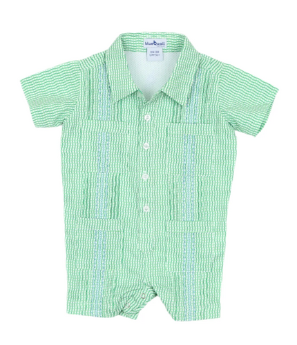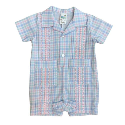 Jade Apple Wave Check Short Sleeve Guayabera Romper