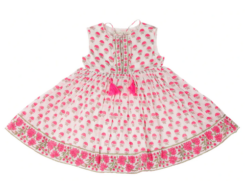 Dominique Flutter Sleeve Vintage Bib Dress - Peony