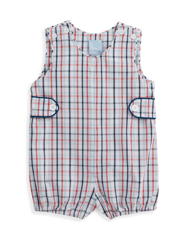 Blue Check Jon Jon With Smocked Flags