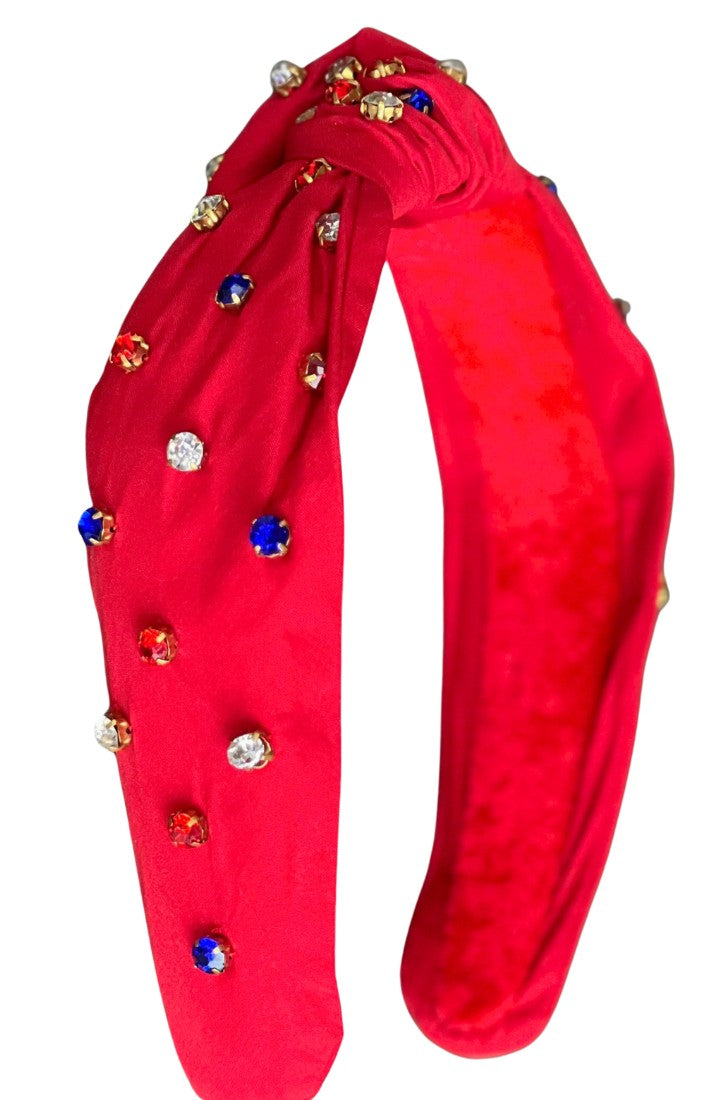 Patriotic Red, White And Blue Jeweled Top Knot Headband