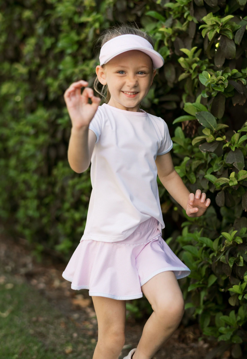 Quinn Tennis Skort - Pink Mini Gingham With Blue Trim