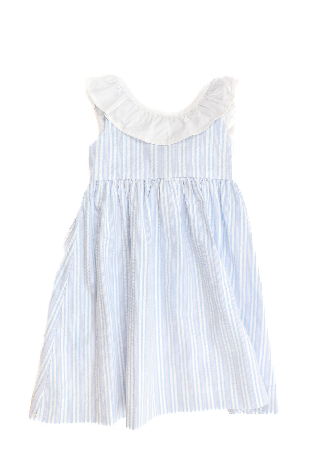 Blue With Pink Sundress Dress With White Collar