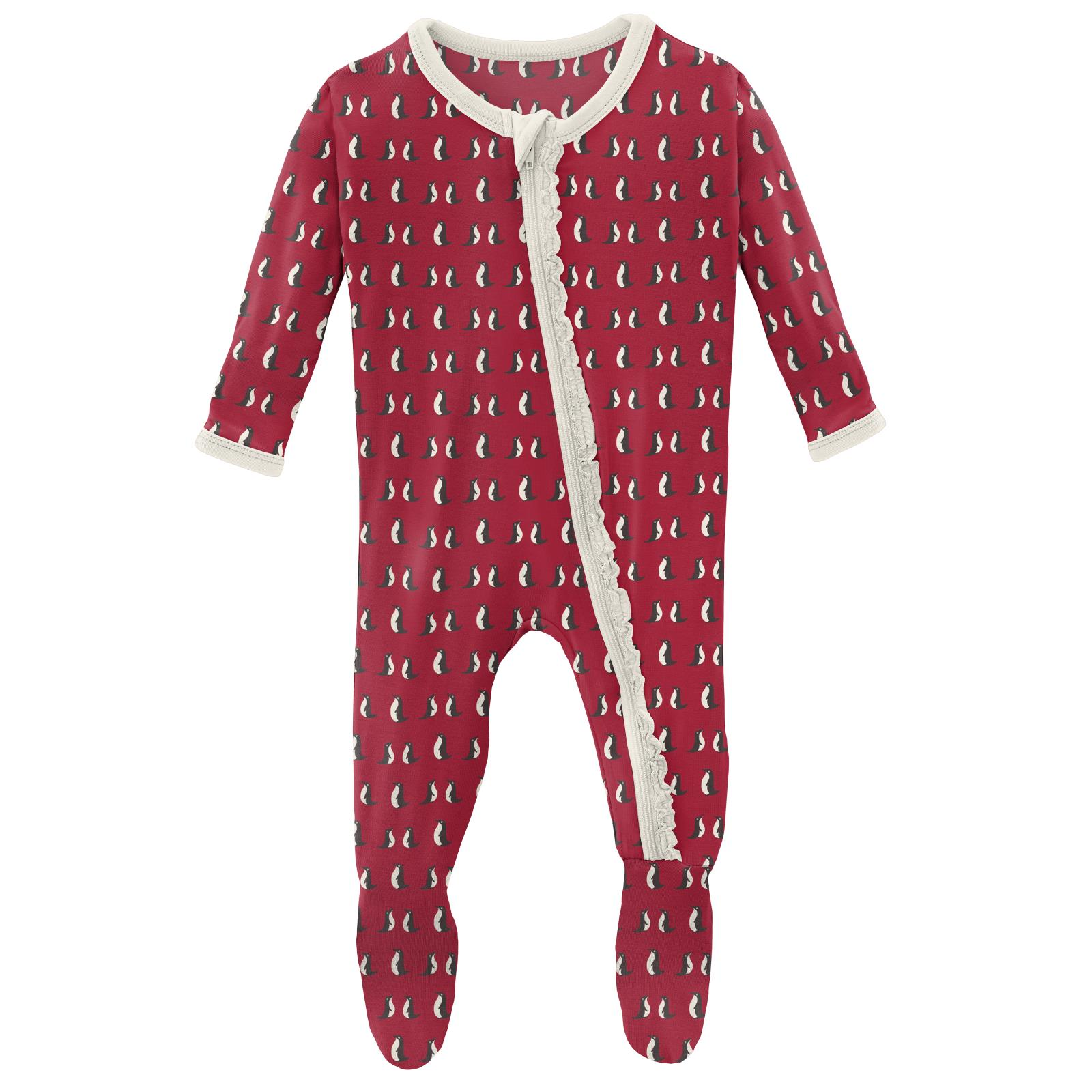 Crimson Penguins Muffin Ruffle Zipper Footie