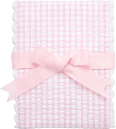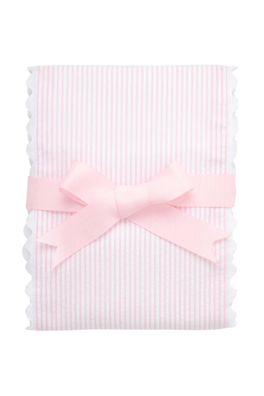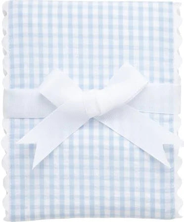 The burp cloths are one of our most practical products! Made from super absorbent, traditional cloth diapers, these burp cloths feature fancy rick rack, ribbon or pom pom trim along fabric panels and come tied with grosgrain ribbon.