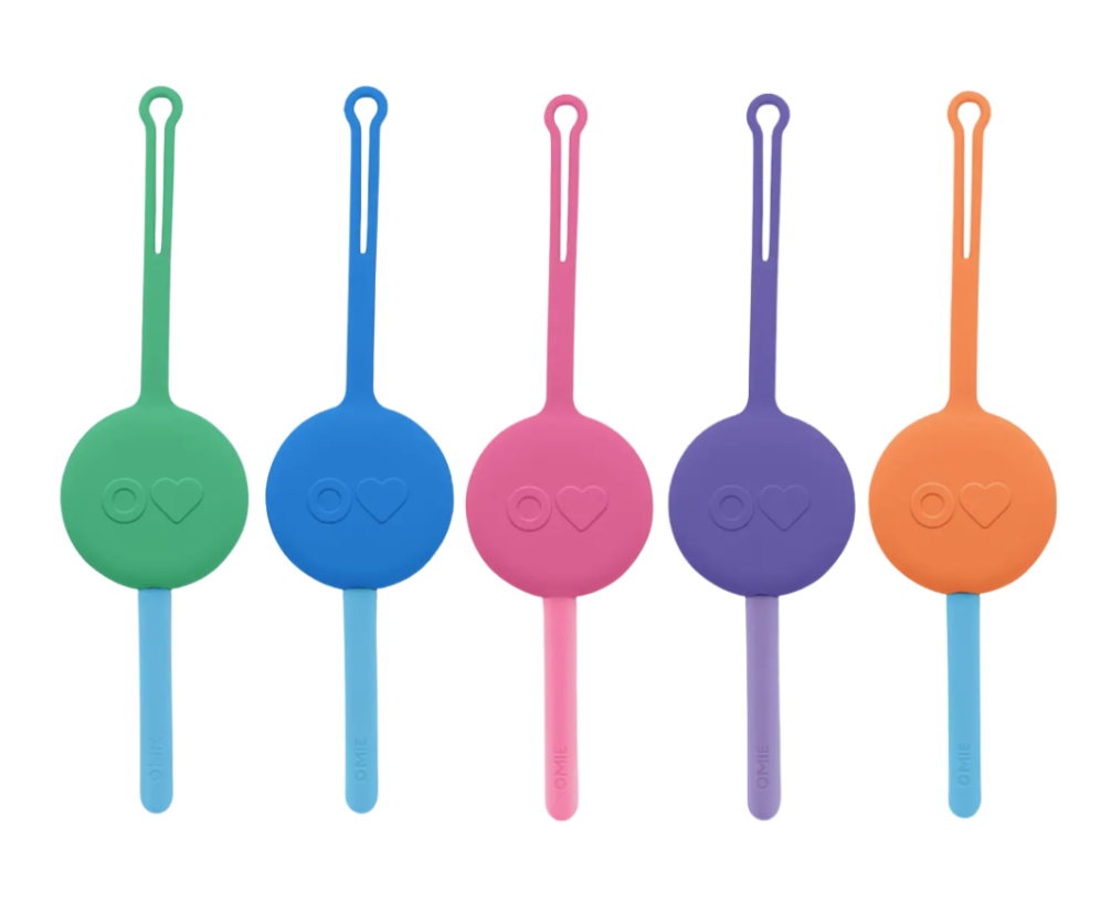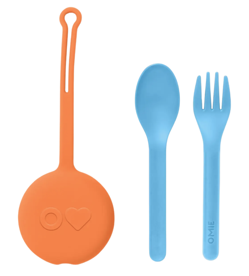 OmiePod is the perfect way to carry utensils with OmieBox®! Pod easily loops around OmieBox® handle. Utensils are held securely and will not fall out. A slit in the back lets kids remove/insert utensils easily. It's easy to clean, and eco-friendly. Pod can be looped around backpacks, diaper bags, purses.
