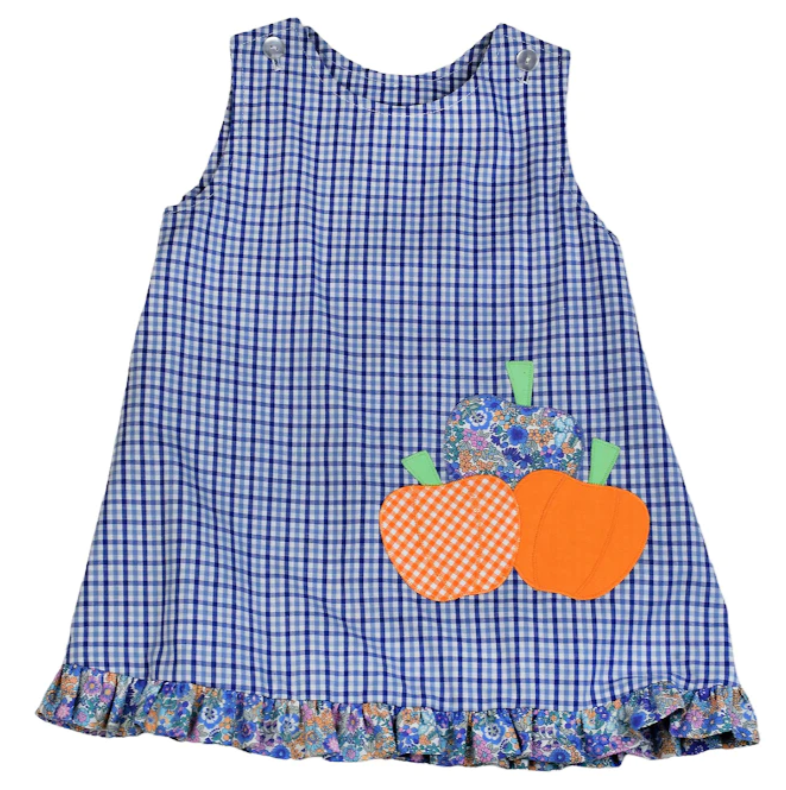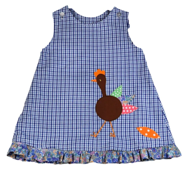 Blue Plaid Reversible Jumper With Pumpkins And Turkeys