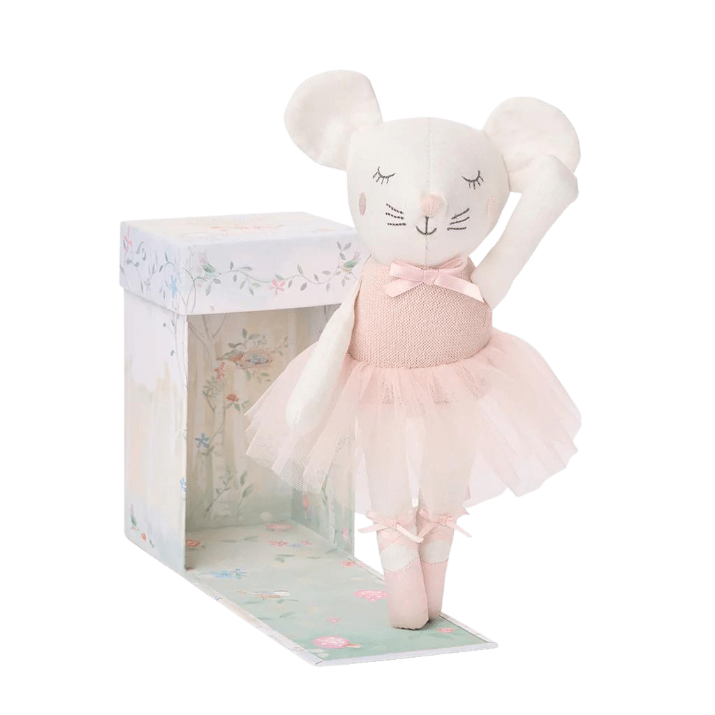 Introducing Elegant Baby's first flip-down boxed mouse knit toy that is as fun to open as it is to cuddle with, making it the perfect baby gift. We package this little meadow mouse in an adorable box that's so cute, it looks great on display!