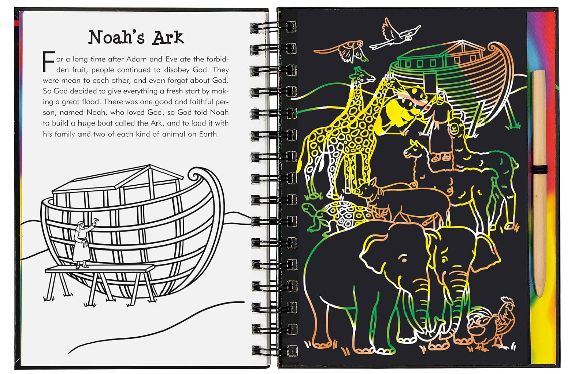 - Scratch and sketch Joseph's rainbow coat, Noah's Ark, and more!