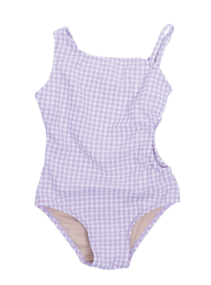 Purple Gingham One Shoulder Cut Out One Piece Bathing Suit