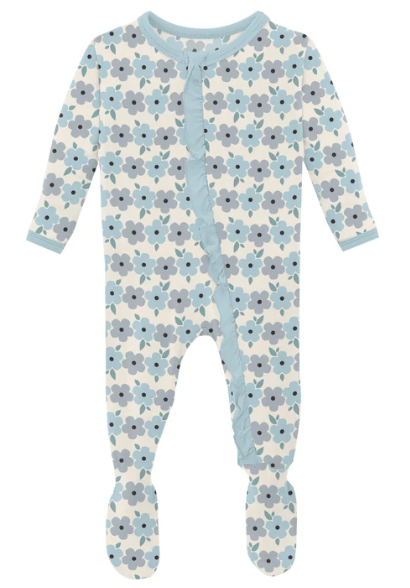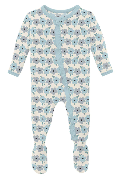 Natural Hydrangea Ruffle Footie With Zipper