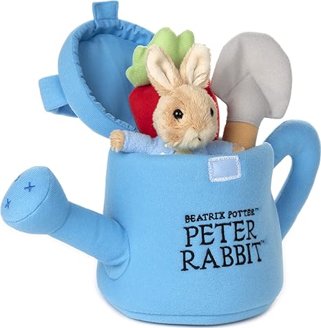 Peter Rabbit is a mischievous young hero on the run from Mr. McGregor in “The Tale of Peter Rabbit.” This 7” plush watering can playset features a 4.5" plush Peter in his signature blue coat, a plush plant, and a plush hoe.