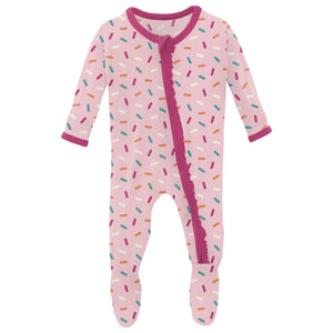 Lotus Sprinkles Print Muffin Ruffle Footie With 2-Way Zipper