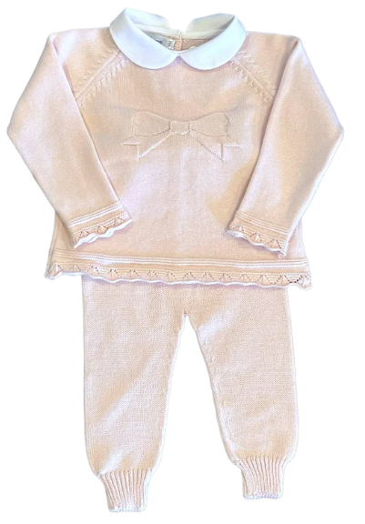 Pink Bow Front Footed Pant Set