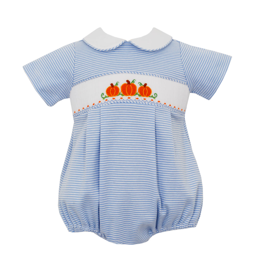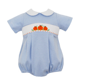 Blue Stripe Knit Bubble With Pumpkin Patch Smocking