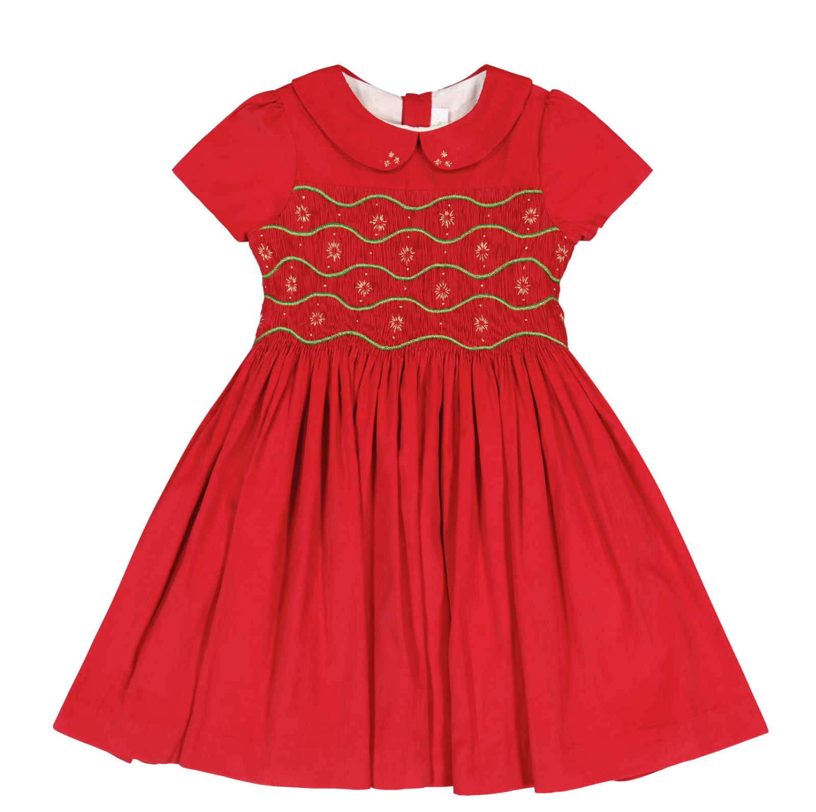Stella Red Corduroy Short Sleeve Smocked Dress