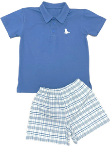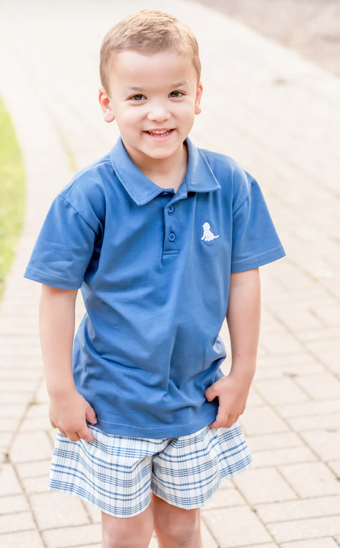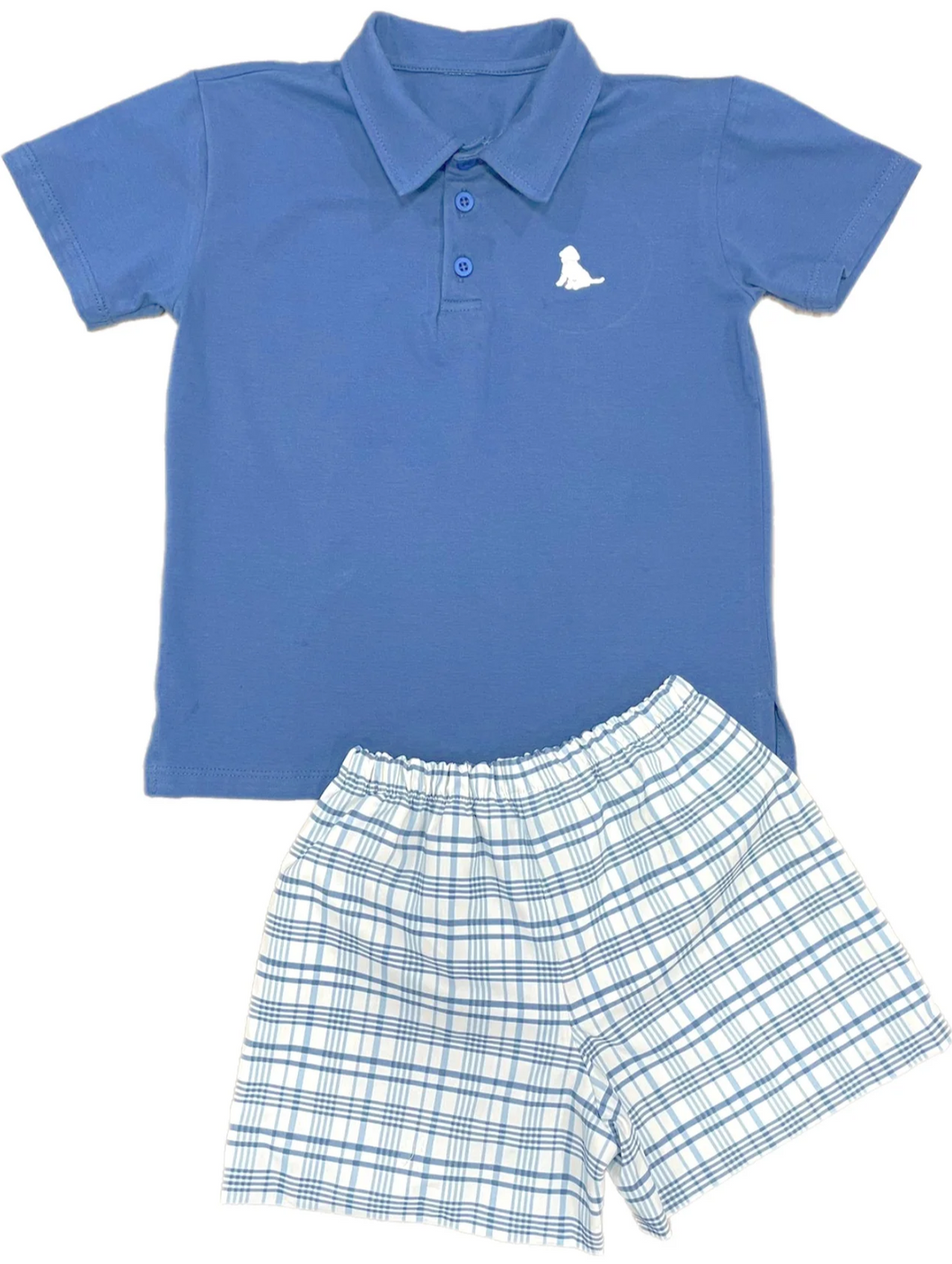 Blue Polo With White Puppy And Blue Plaid Conrad Shorts